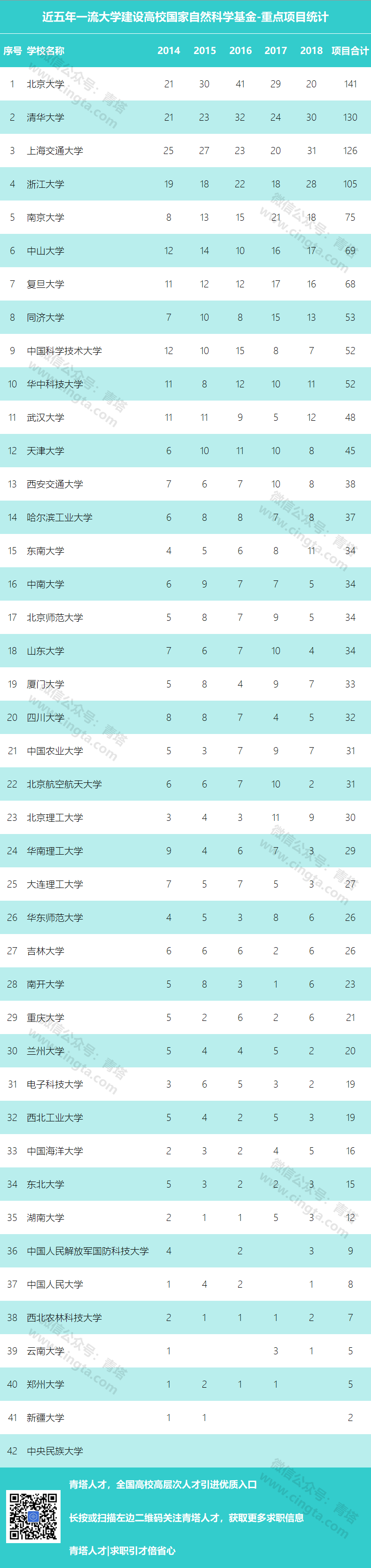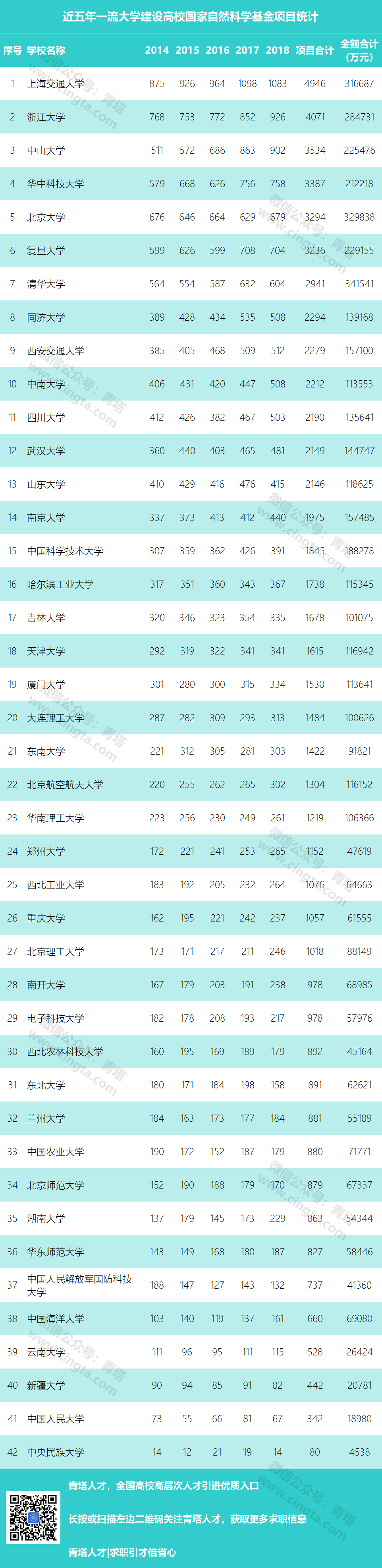 根據(jù)往年國家自然基金項目委員會公布集中受理的時間來看,2019年集中受理項目很大概率將于本周四、五公布,到時便可知道各大高校、科研單位2019年獲批項目數(shù)量和金額情況。接下來將統(tǒng)計近五年來各大高校獲批基金項目的數(shù)量,供大家參考。