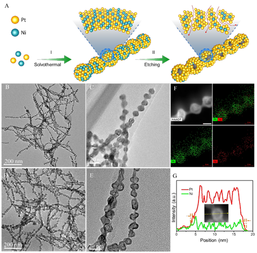 圖1.鉑鎳合金結(jié)構(gòu)、形貌和制備示意圖