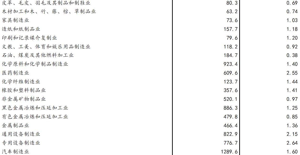 分產(chǎn)業(yè)部門(mén)來(lái)看,高技術(shù)制造業(yè)研究與試驗(yàn)發(fā)展(R&D)經(jīng)費(fèi)3804.0億元,投入強(qiáng)度(與營(yíng)業(yè)收入之比)為2.41%;裝備制造業(yè)研究與試驗(yàn)發(fā)展(R&D)經(jīng)費(fèi)7868.0億元,投入強(qiáng)度為2.07%。