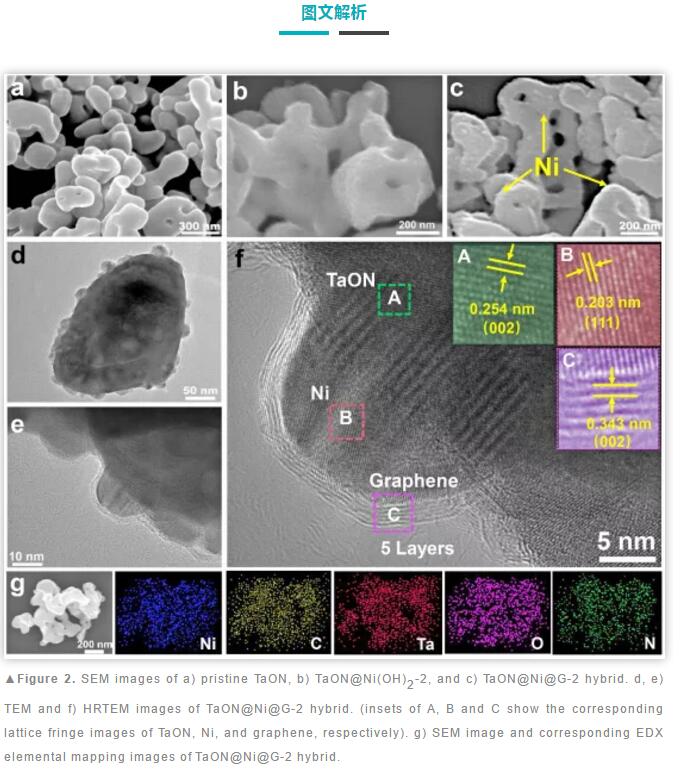 作者基于化學(xué)氣相沉積法在TaON顆粒表面實(shí)現(xiàn)了原位生長(zhǎng)島狀空心氮摻雜石墨烯。所構(gòu)造的TaON@G光催化劑具有利于電荷分離和轉(zhuǎn)移的異質(zhì)結(jié)界面,利于CO2吸附和活化的中空納米島狀石墨烯,以及利于誘導(dǎo)氧化還原半反應(yīng)空間分離的分層次結(jié)構(gòu)。