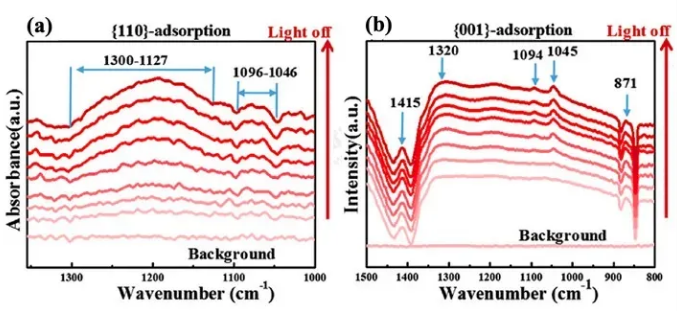 紅外光譜技術(shù)是現(xiàn)今科研工作者最重要的分析技術(shù)手段之一,是研究表征分子結(jié)構(gòu)的一種有效手段,用于測定樣品或反應(yīng)體系隨時間、溫度、壓力及環(huán)境變化而變化的規(guī)律。與其它方法相比較,它最大的優(yōu)勢在于可以在選擇合適制樣方式的條件下測定在任何狀態(tài)下的樣品,包括液體、溶液、粘稠狀樣品、粉末、膜、纖維以及氣體等。由于分子能選擇性吸收某些波長的紅外線,從而引起分子中振動能級和轉(zhuǎn)動能級的躍遷,因此可以檢測出紅外線被吸收的情況,得到物質(zhì)的紅外吸收光譜,該光譜又被稱為分子振動光譜或振轉(zhuǎn)光譜。原位紅外技術(shù)在催化劑原位表征中占主導(dǎo)地位,借助原位紅外光譜,可以得到非常豐富的分子信息。該技術(shù)通常用于識別吸附原位拉曼光譜:(a-b)H2SO4,(c-d)(NH4)2SO4[4]的物質(zhì),并且可以觀測微觀吸附范圍,同時可以在動力學(xué)研究中跟蹤其隨時間的變化規(guī)律,被廣泛應(yīng)用于催化劑表征(吸附態(tài)、固體表面酸性、活性中心)研究、反應(yīng)動力學(xué)研究,以及聚合物反應(yīng)動力學(xué)、結(jié)晶動力學(xué)、固化動力學(xué)以及熱穩(wěn)定性、樹脂老化研究。董帆教授課題組通過原位紅外證實,由于Bi2O2CO3光催化劑{110}和{001}面上原子排列的差異,Bi2O2CO3-001在吸附活化過程中使NO轉(zhuǎn)化為NO-或順式N2O2 2-,而Bi2O2CO3-110則誘導(dǎo)NO吸附活化為NO+或N2O3。不同的吸附活化路徑將影響光催化去除NO的效果。