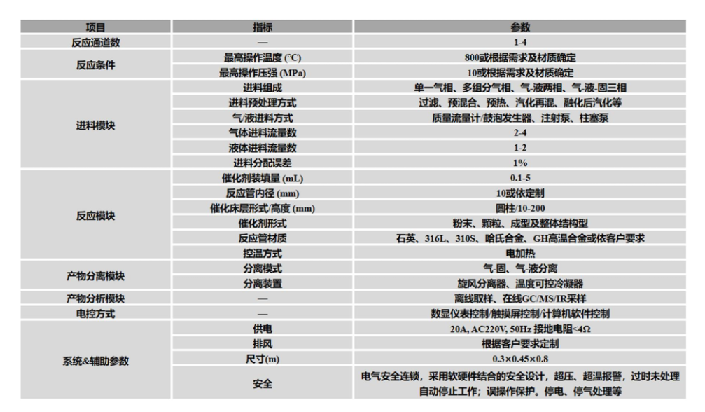 適用性:可實現(xiàn)多氣相、氣-液兩相和氣-液-固三相反應(yīng),并能與GC/MS/IR等聯(lián)用實現(xiàn)在線檢測;