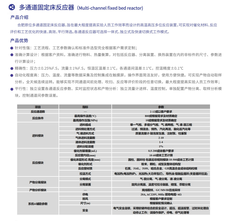 多通道固定床反應(yīng)器產(chǎn)品介紹: